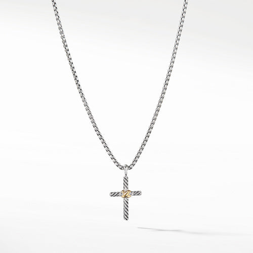 Sterling silver and 14-karat yellow gold • • Petite box chain, 1.25mm wide • Cross, 13x8mm • Lobster clasp