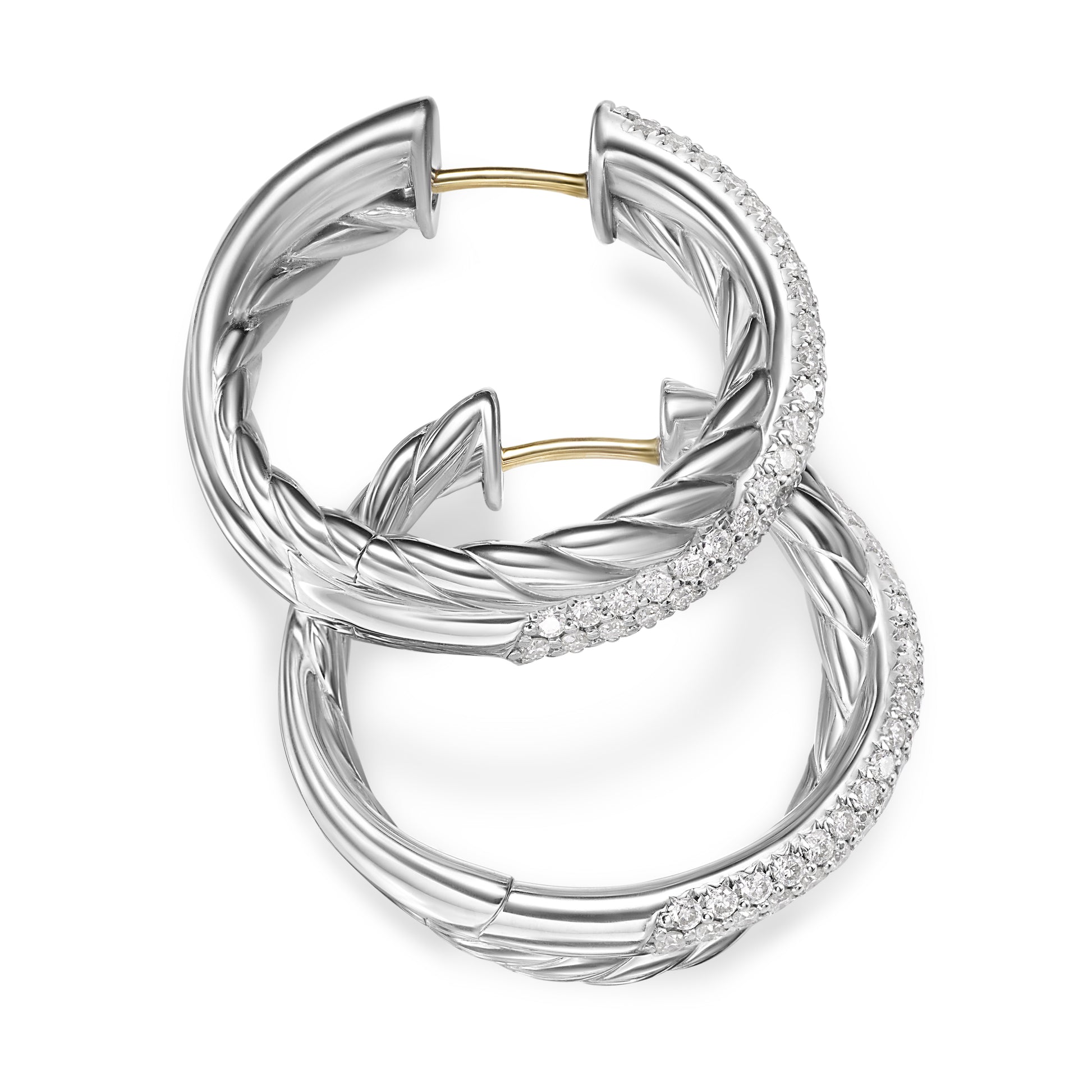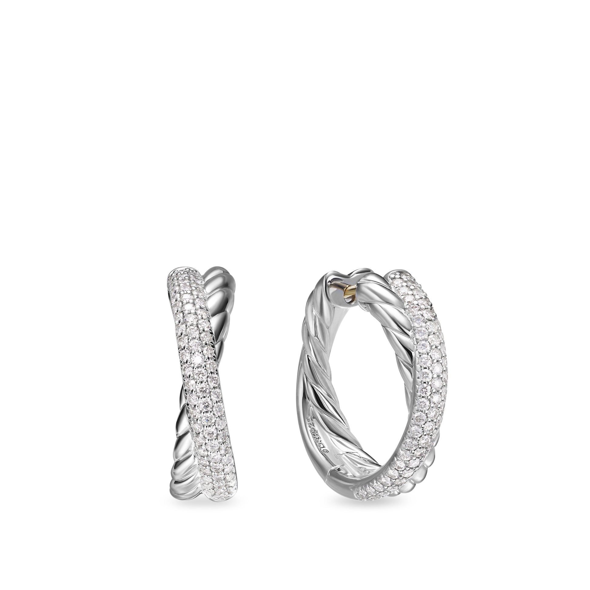 Crossover Hoop Earrings in Sterling Silver with Diamonds, 22.4mm