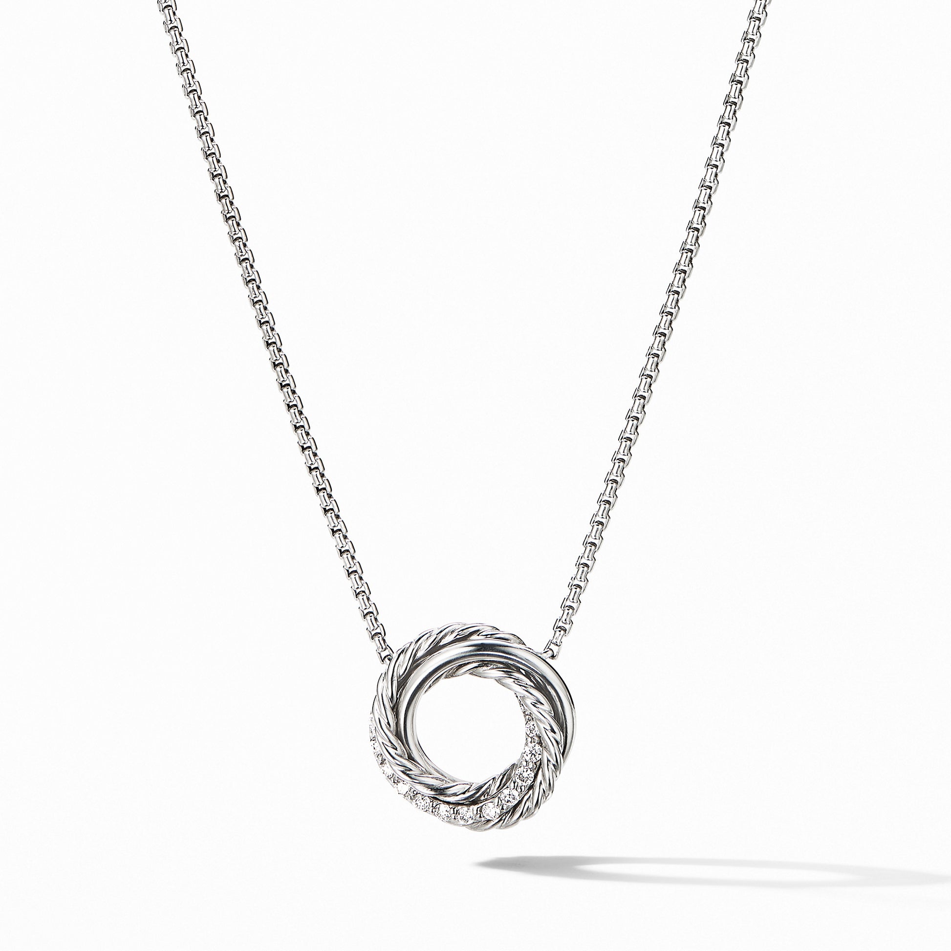 Sterling Silver • Pavé Diamonds, 0.12 total carat weight, • Adjustable length, 16-17 • Pendant, 14.5mm • Lobster clasp
