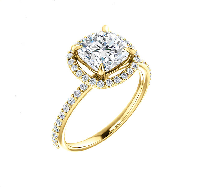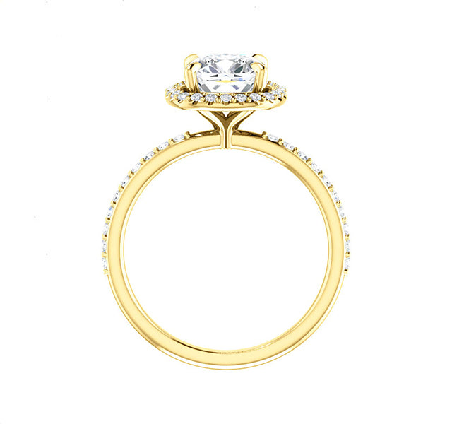 MJ Tried & True high polished Halo Mounting. Diamonds set half way down shank.