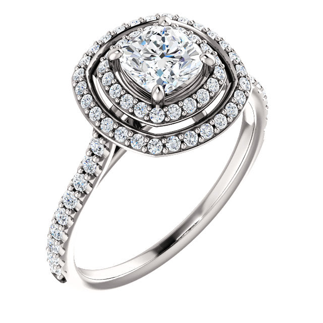 Double Row Diamond Cushion Halo for Cushion Center Halo