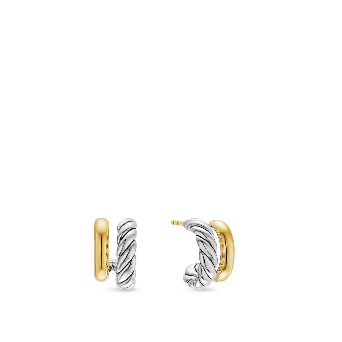 DY Mercer® Double Hoop Huggie Earrings in Sterling Silver with 18K Yellow Gold, 13.5mm