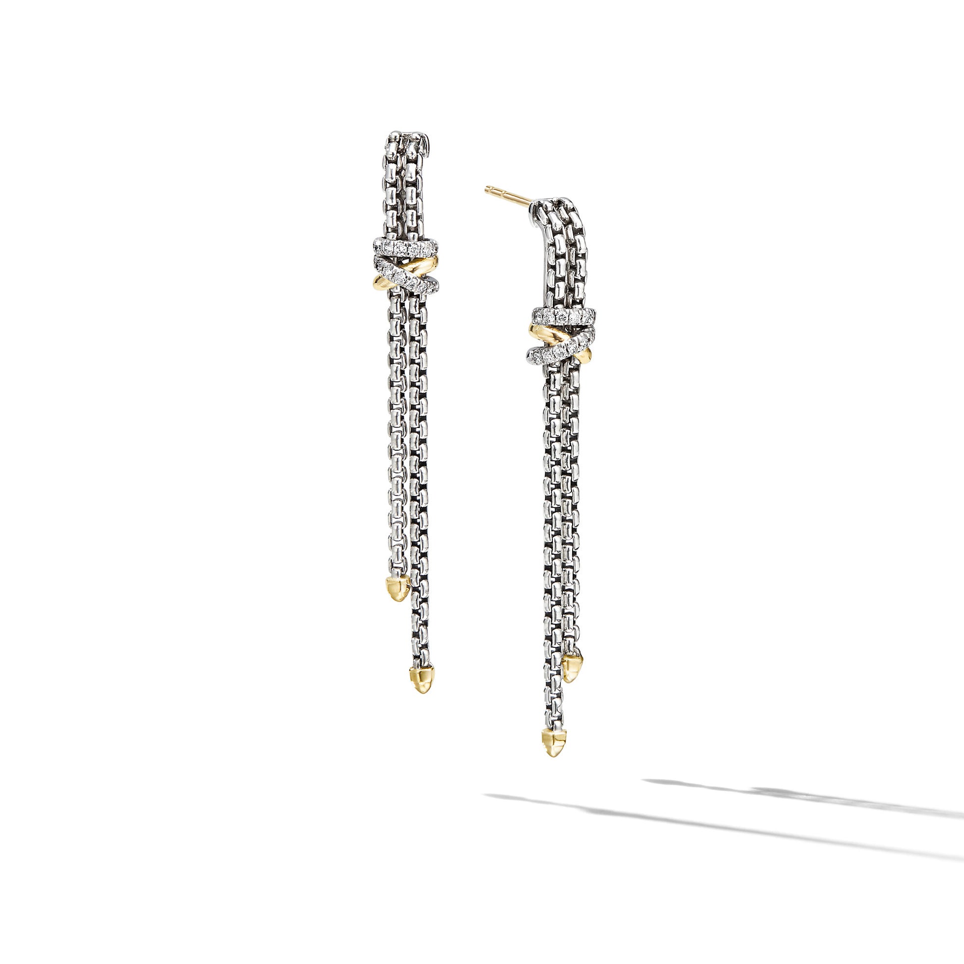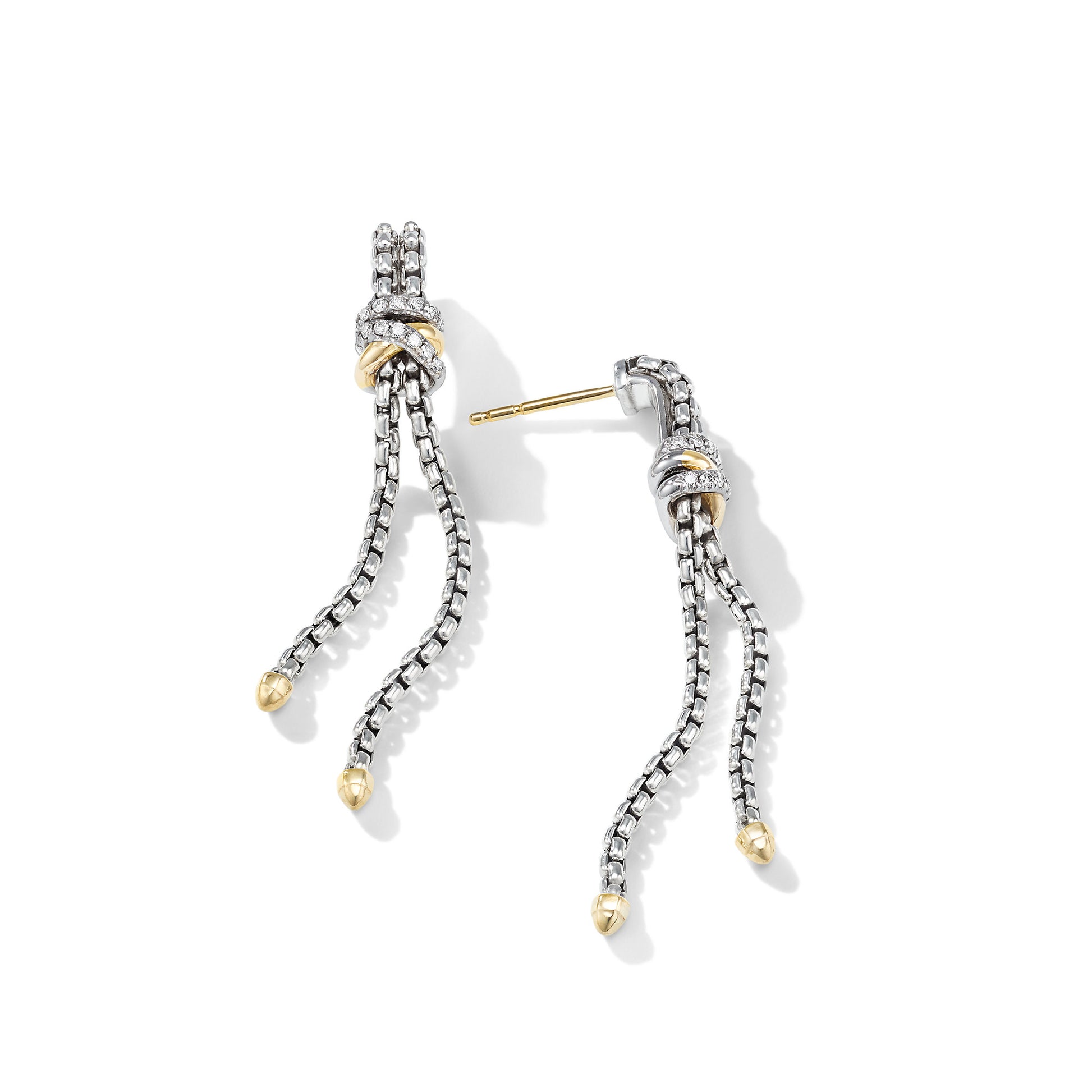 Sterling silver with 18-karat yellow gold • Pavé diamonds, 0.19 total carat weight • Earring drop length, 50.8mm