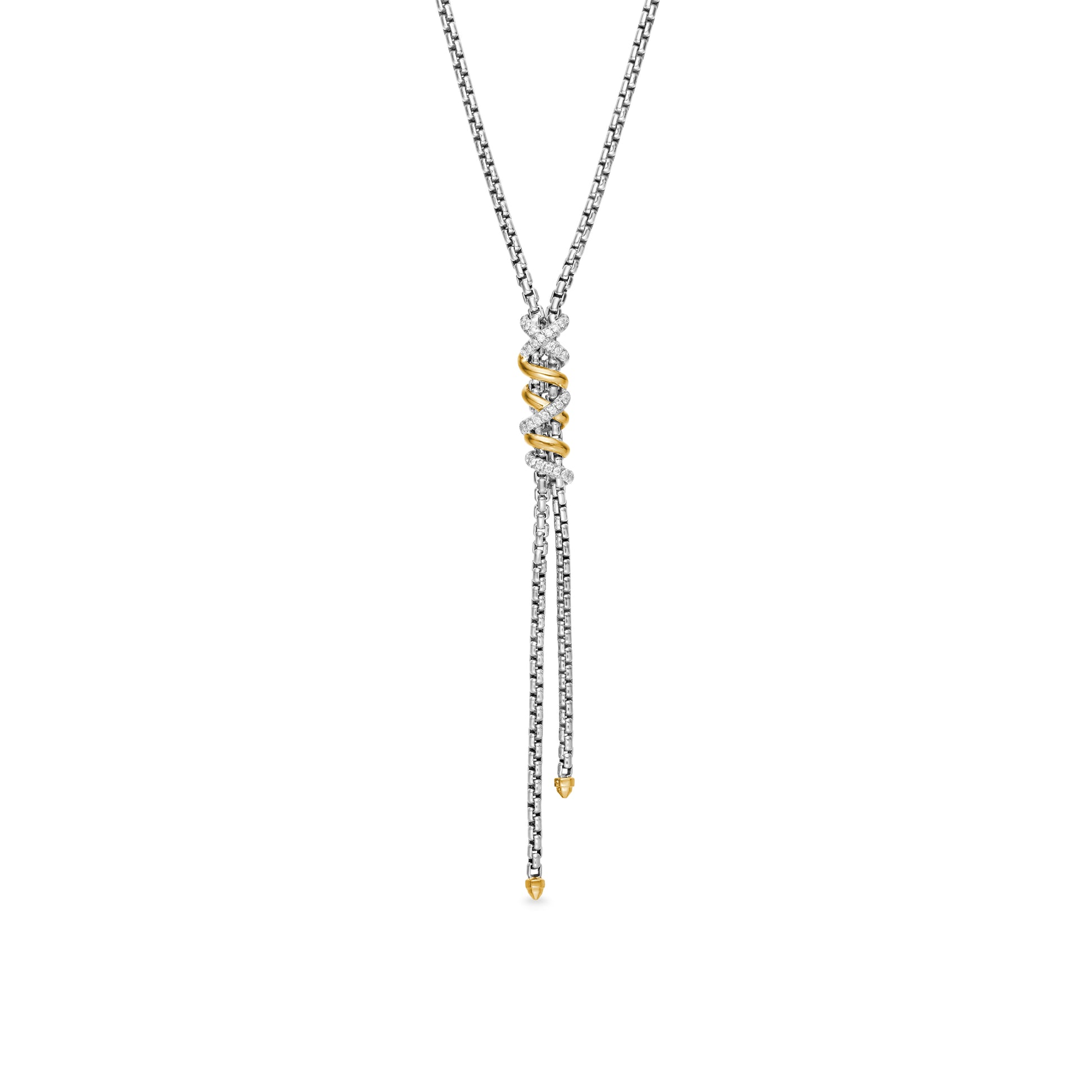 Sterling silver with 18-karat yellow gold • Pavé diamonds, 0.26 total carat weight • Adjustable length, 17-18in • Chain, 2.7mm • Lobster clasp-