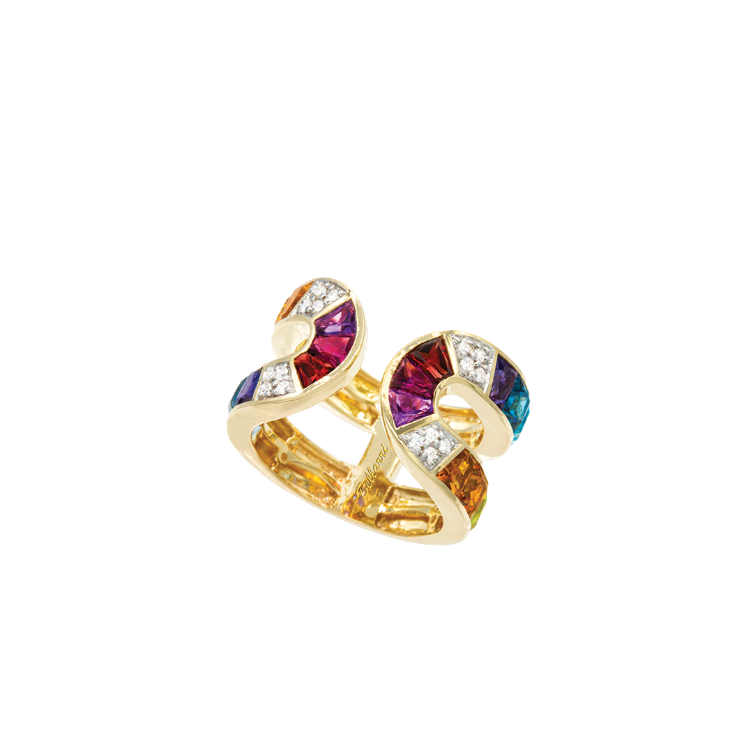 'Lazy River' Multicolor Gemstone Ring with Diamonds