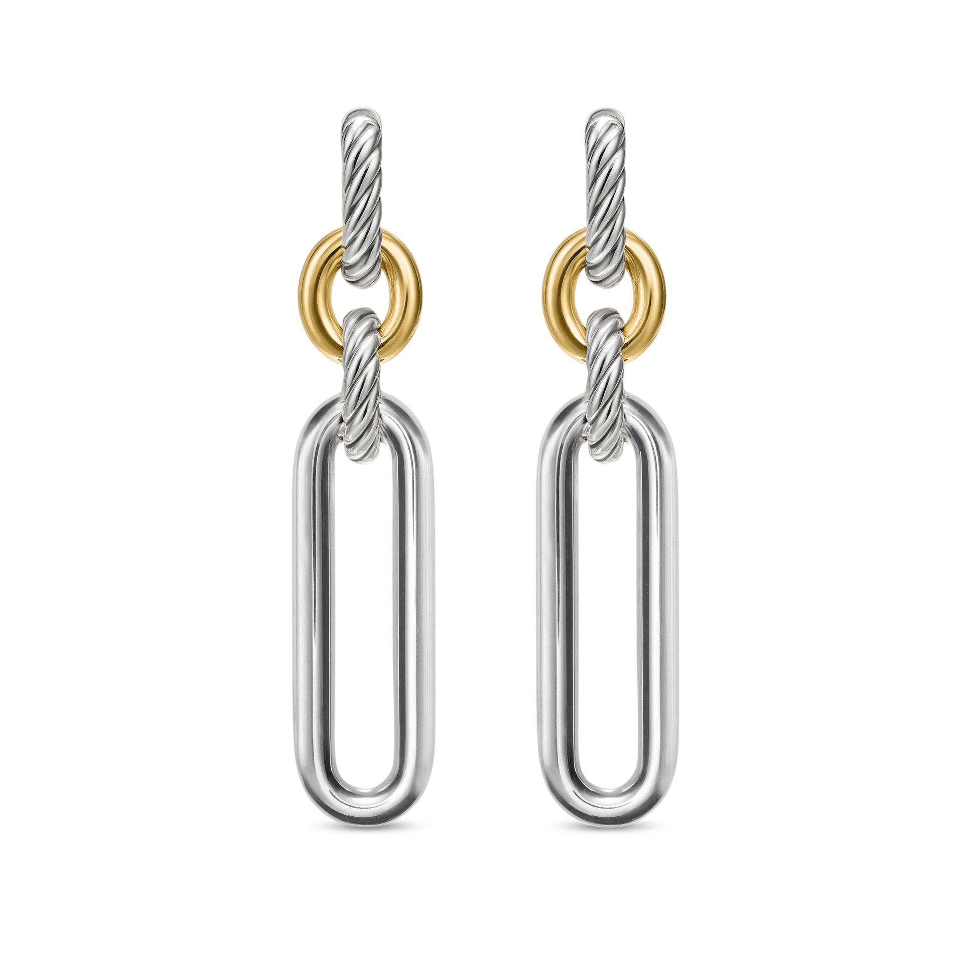 Lexington Double Link Drop Earrings in Sterling Silver with 18K Yellow Gold, 54mm