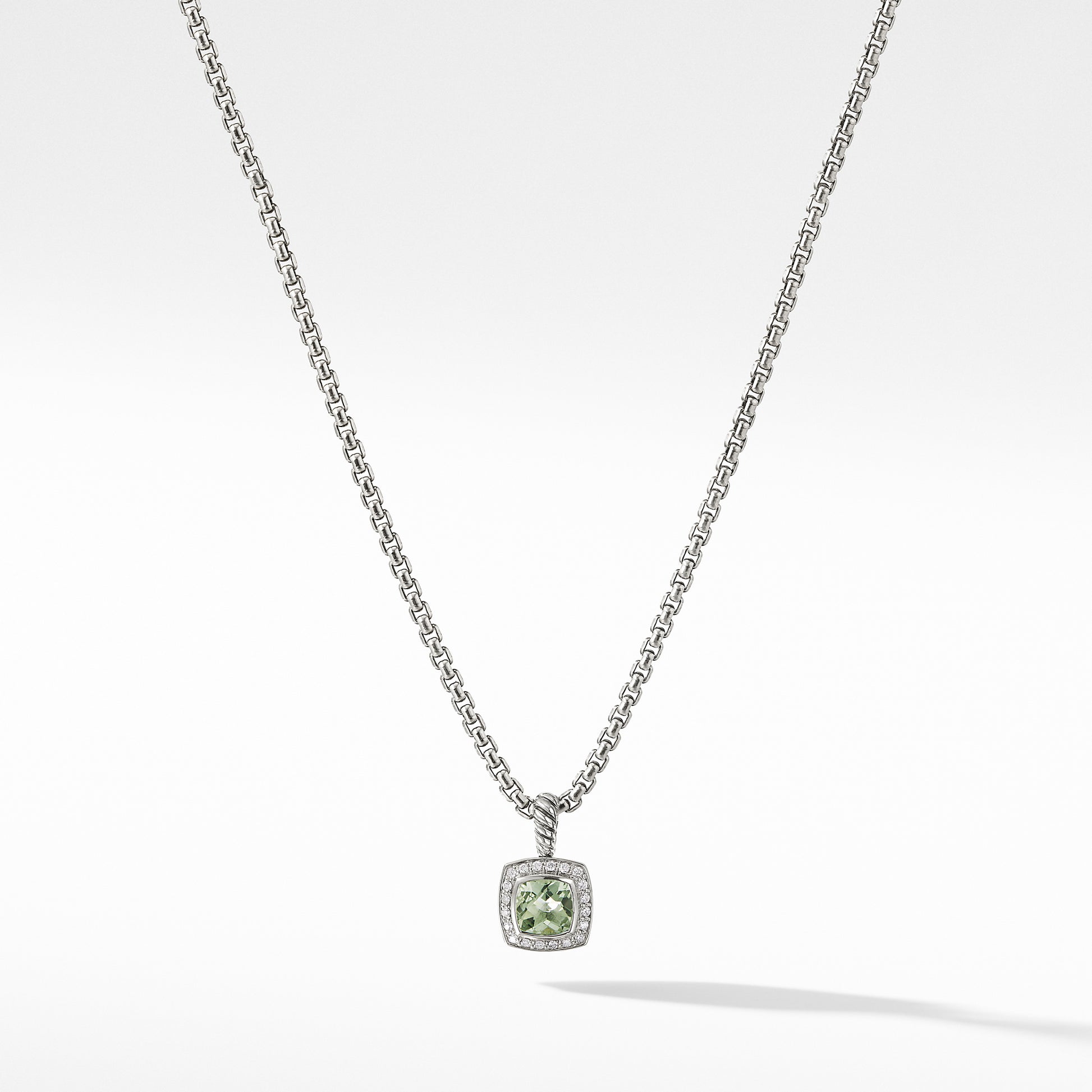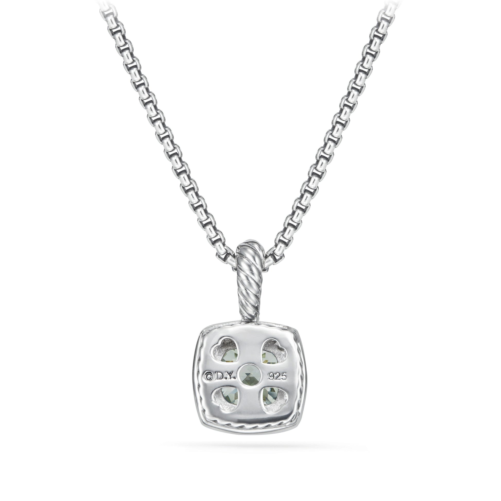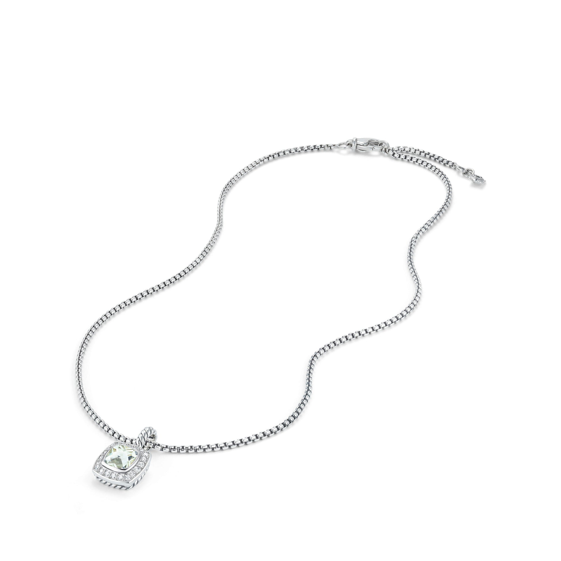 Sterling silver • Faceted Prasiolite, 7x7mm, Pavé diamonds, 0.17 total carat weight, • Baby box chain, 1.7mm wide • Pendant, 11x11mm • Lobster claspDavid Yurman