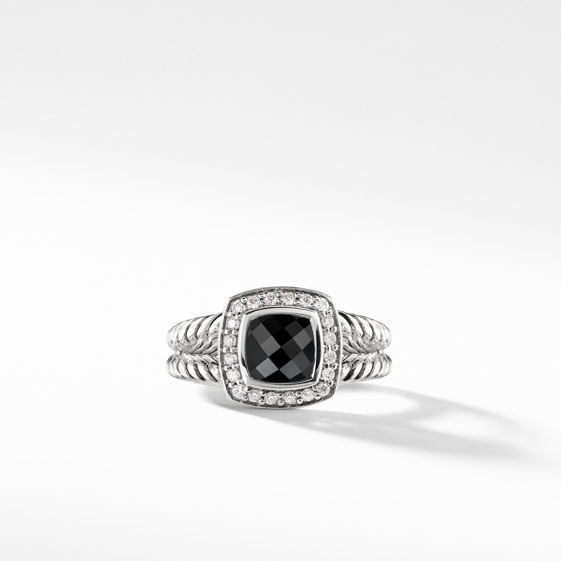 Sterling silver • Faceted black onyx, 7 x 7mm • Pavé diamonds, 0.17 total carat weight • Ring, 12 x 12mm -Split-shank