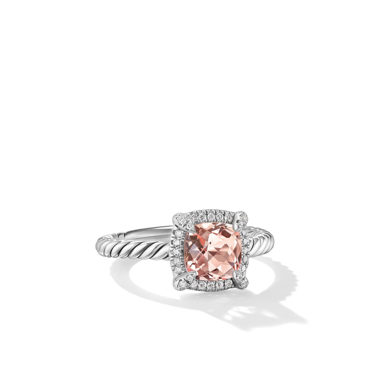 Petite Chatelaine® Pavé Bezel Ring in Sterling Silver with Morganite and Diamonds, 7mm