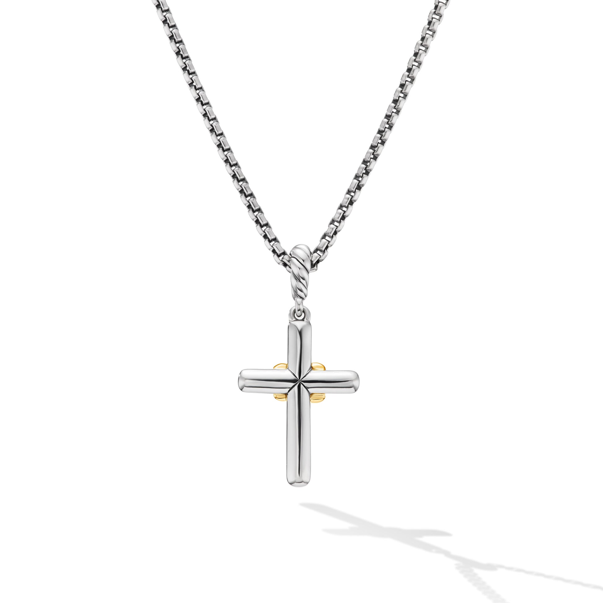 Petite Cross Necklace in Sterling Silver with 18K Yellow Gold with Diamonds, 20.8mm