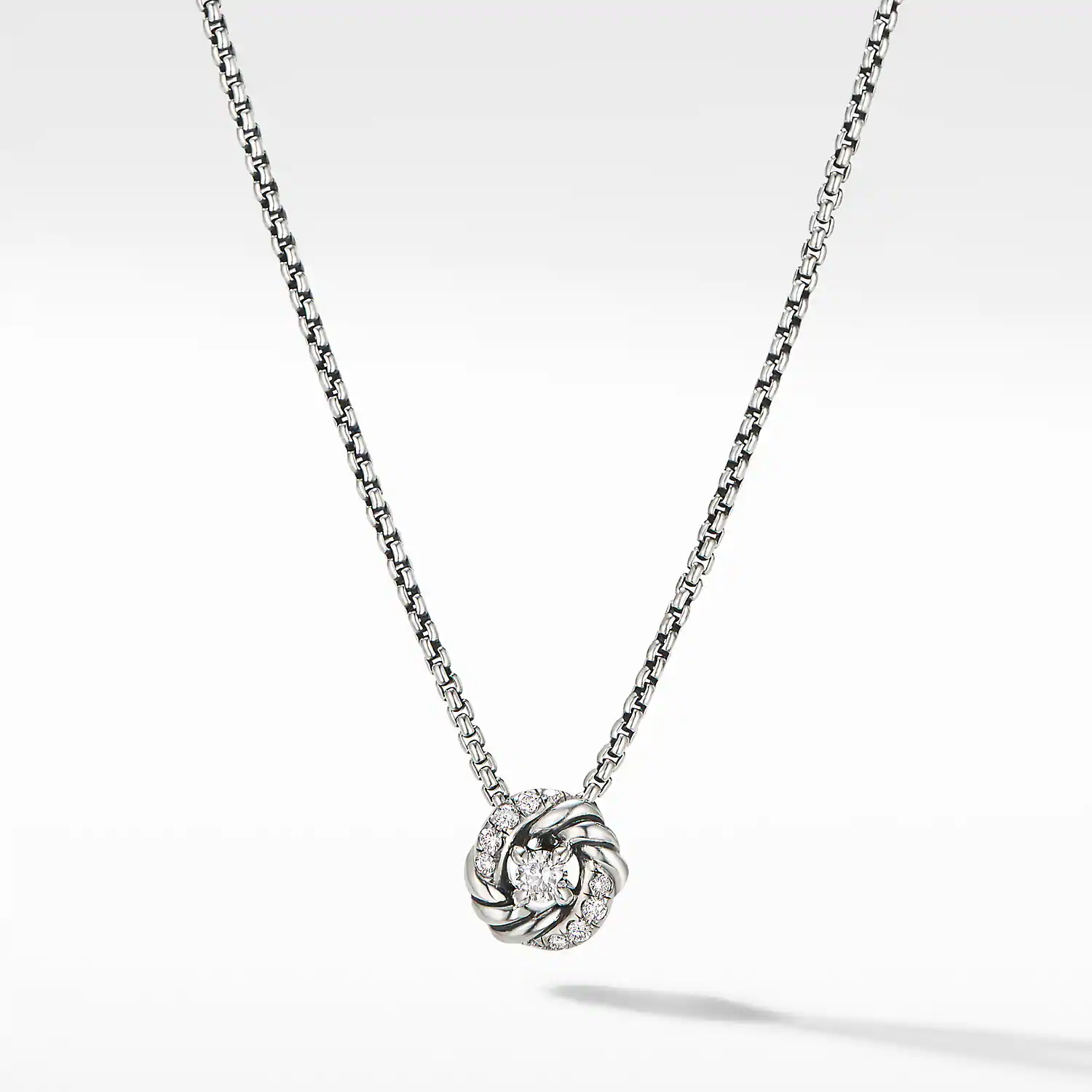 Sterling Silver • Pavé Diamonds, 0.12 total carat weight, • Adjustable length, 17 • Pendant, 8mm • Lobster clas