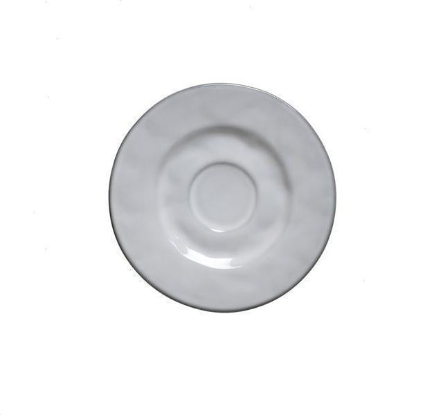 Juliska white saucer from the Quotidien Collection - Simple footing and a broad rim make this saucer a cozy resting spot for your afternoon cup of tea. Made of ceramic stoneware in Portugal it is microwave, dishwasher, oven, and freezer safe.
