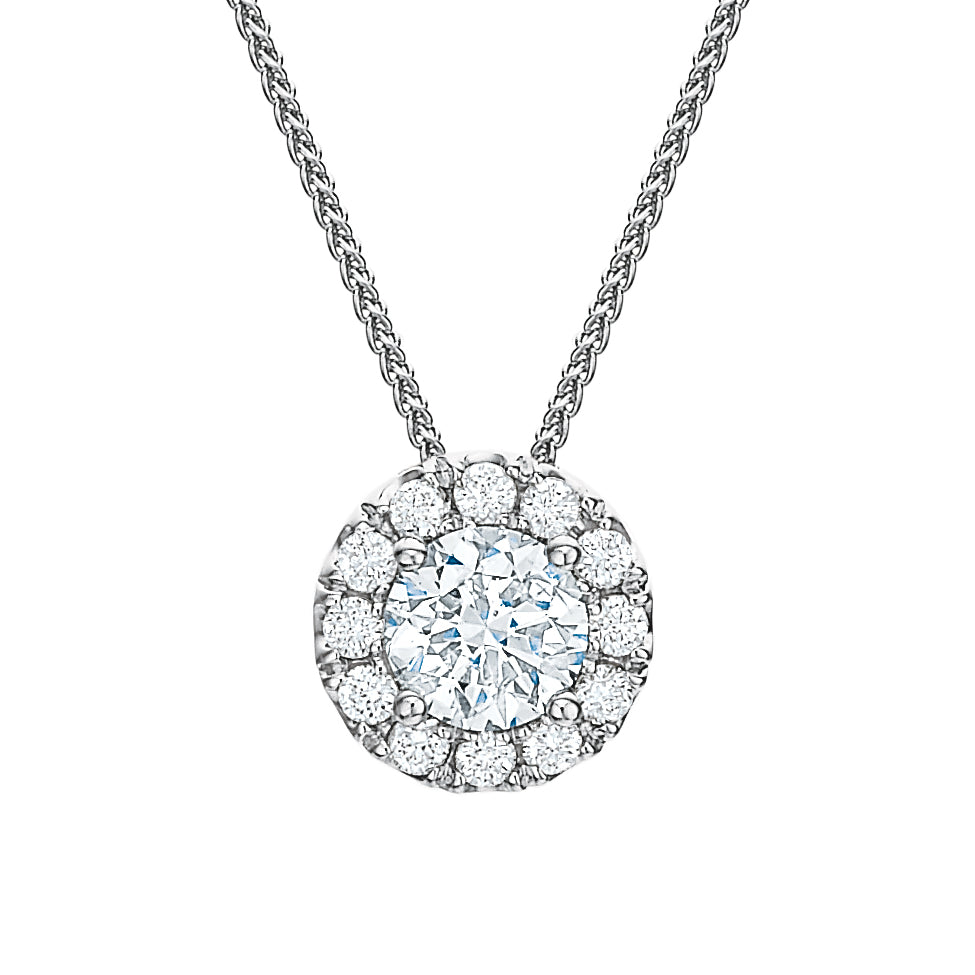 Round Diamond Halo Pendant Necklace .75tw