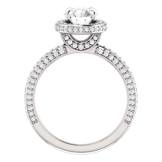 MJ Tried & True Setting with a Round Halo, Triple Row Diamond shank and Diamond under Gallery.