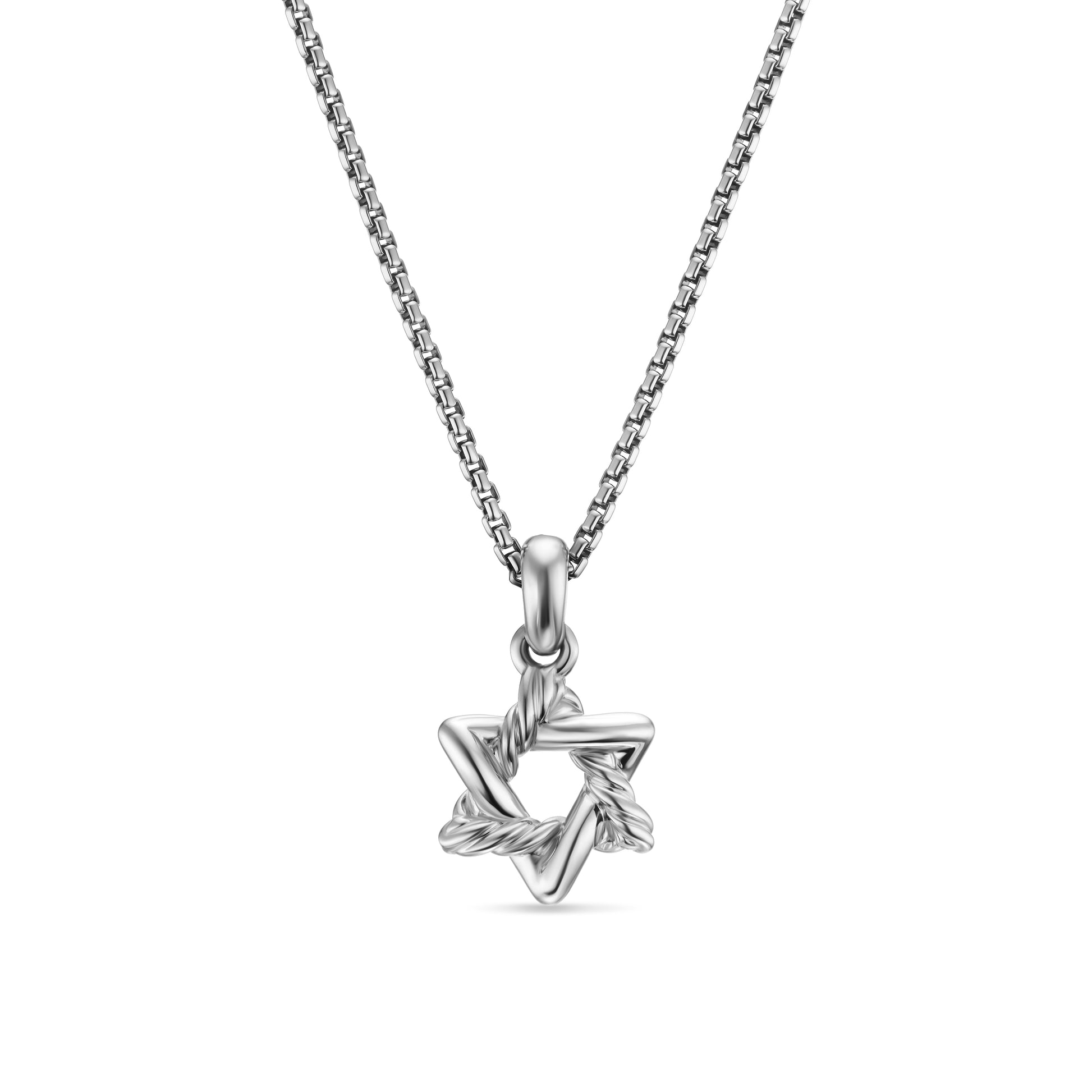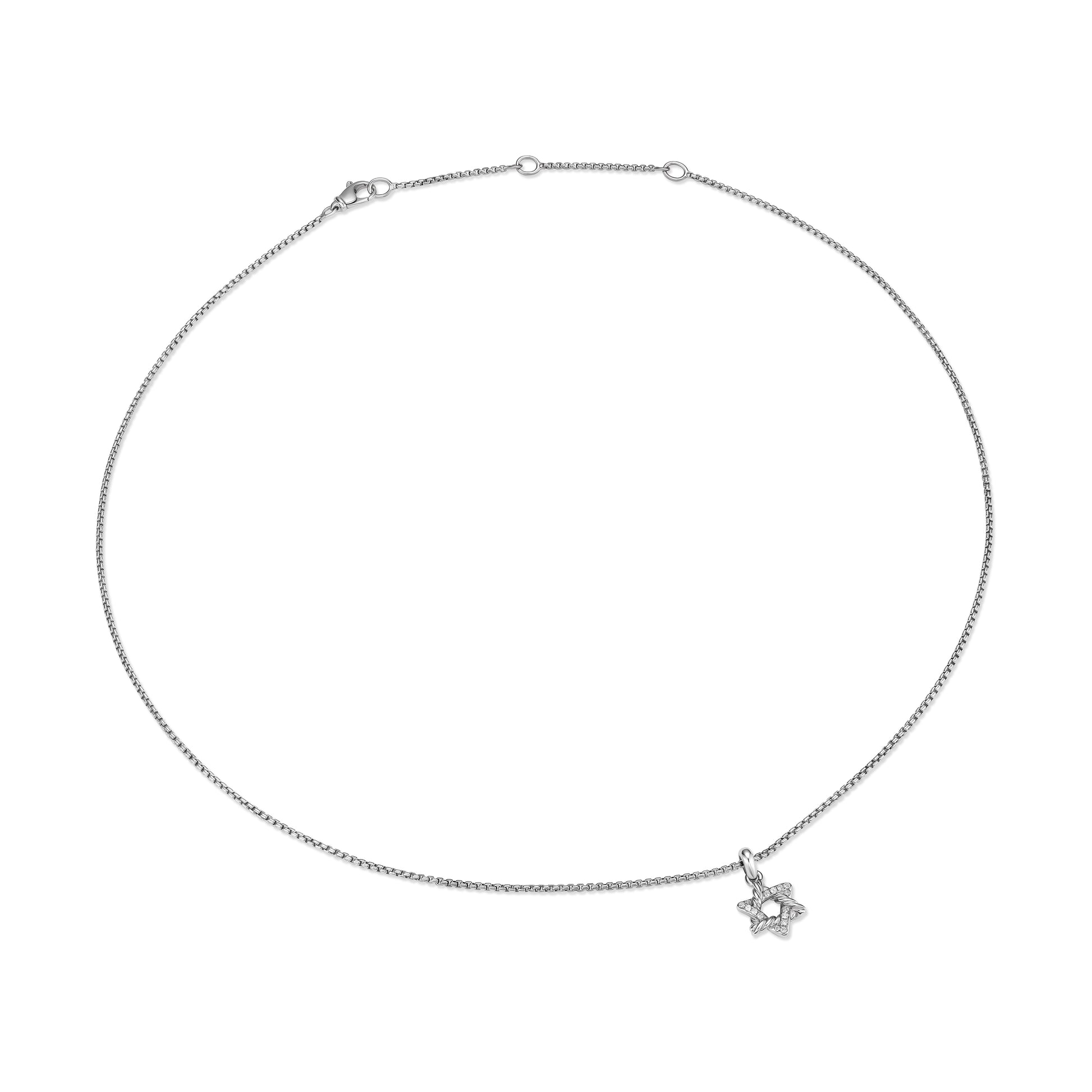 Star of David Pendant Necklace in Sterling Silver with Diamonds, 9.6mm
