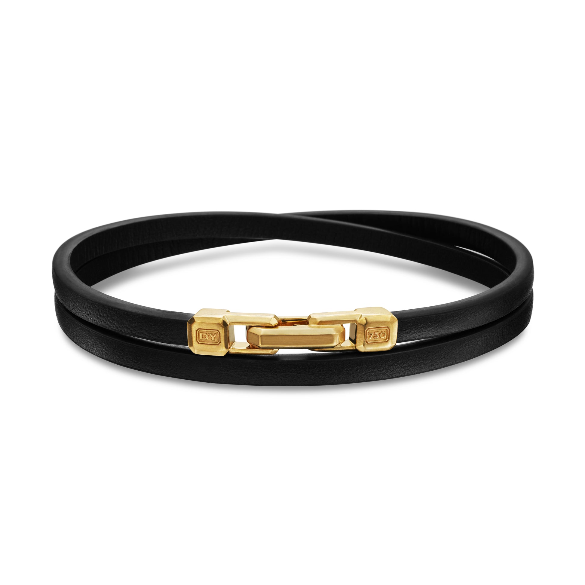 Streamline® Double Wrap Bracelet in Black Leather with 18K Yellow Gold, 4mm