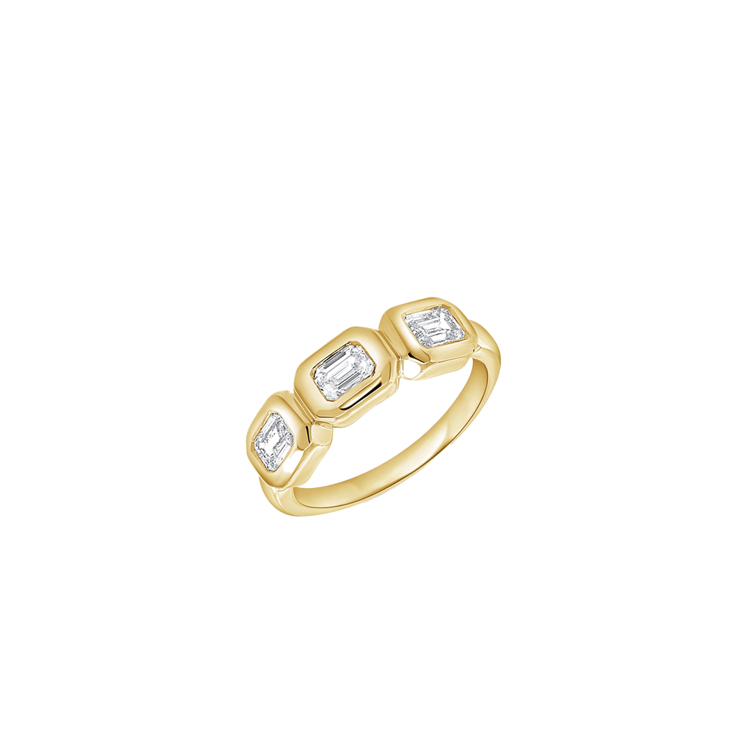 Three Stone Emerald Cut Bezel Set Diamond Ring
