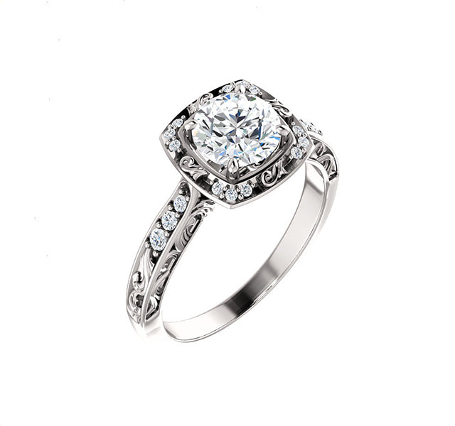 Vintage Style Filigree Setting with Diamond Halo & Sides